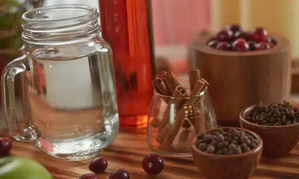 2. In a large, sealable container, combine the chopped fruit with Everclear, allspice, cloves, and cinnamon. Shake well.